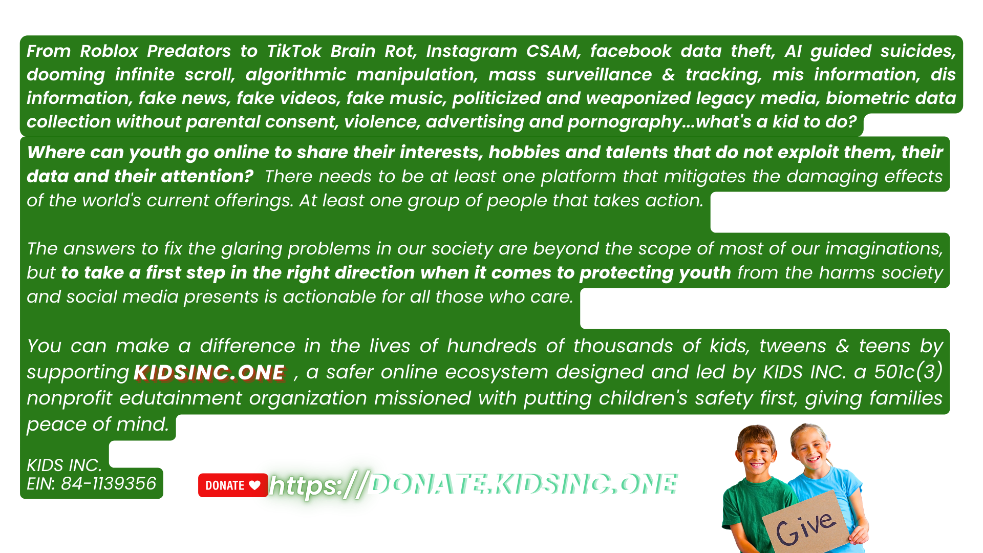 EIN 84-1139356 contact: admin@kidsinc.cc