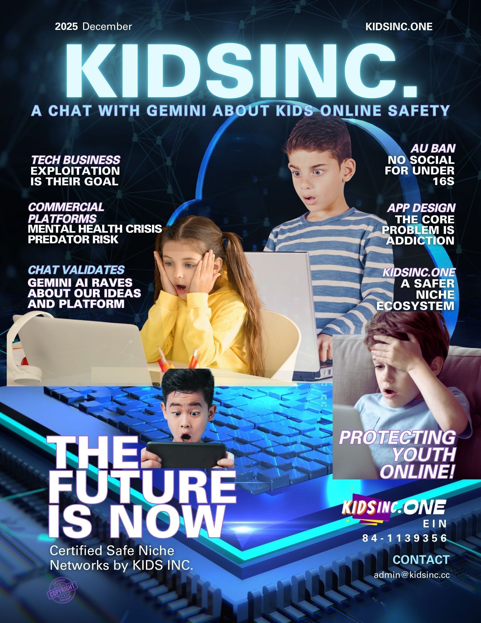 A chat with AI confirms our belief that safer alternative social media options should be developed for youth. After 5 years in development, KIDS INC. preps to launch a safe family friendly platform, kidsinc.ONE.