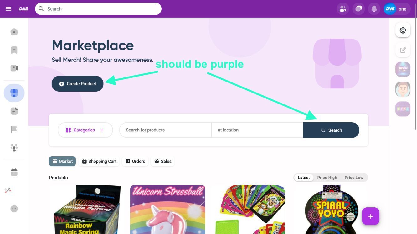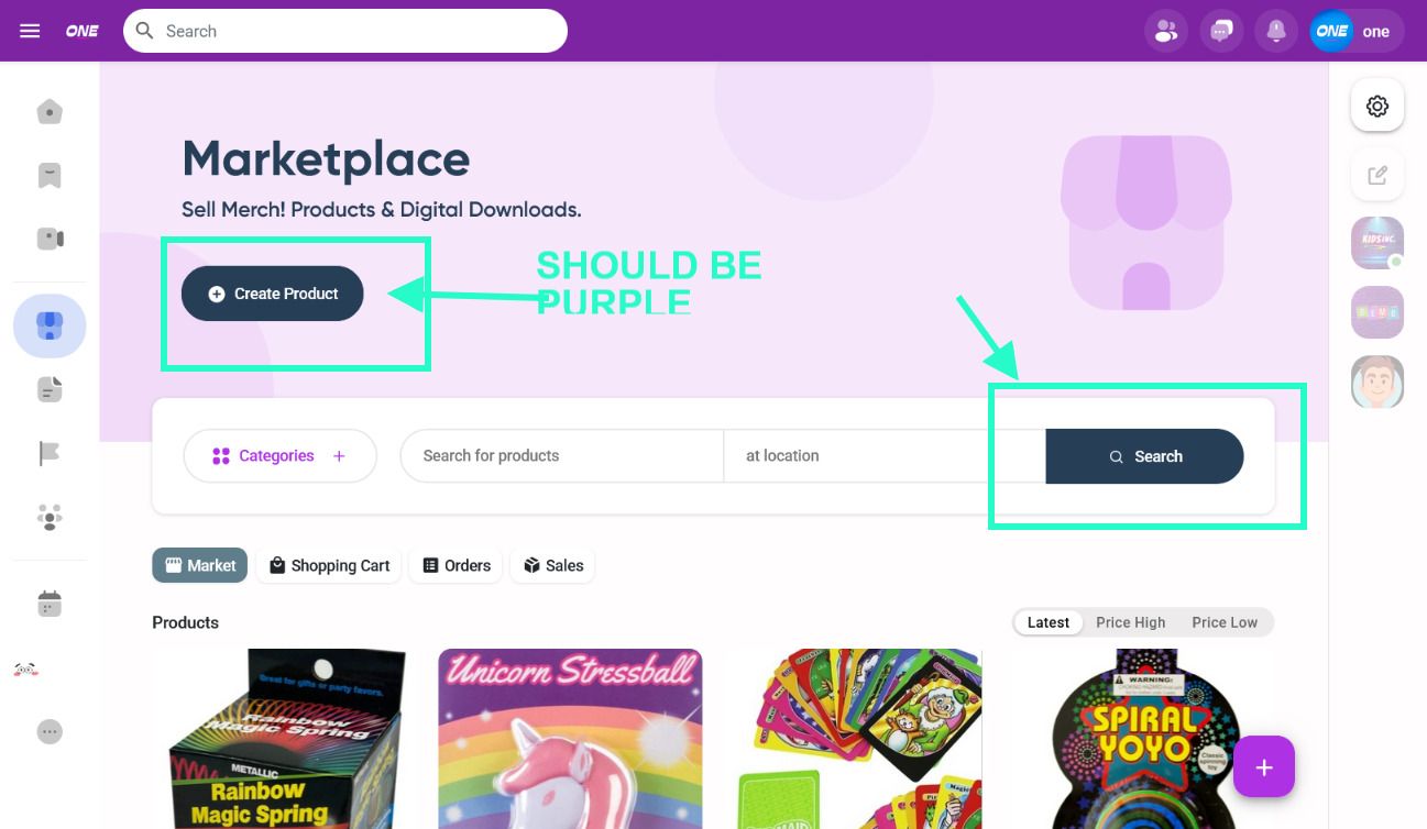 MARKETPLACE & SEARCH BAR BUTTONS SHOULD BE PURPLE