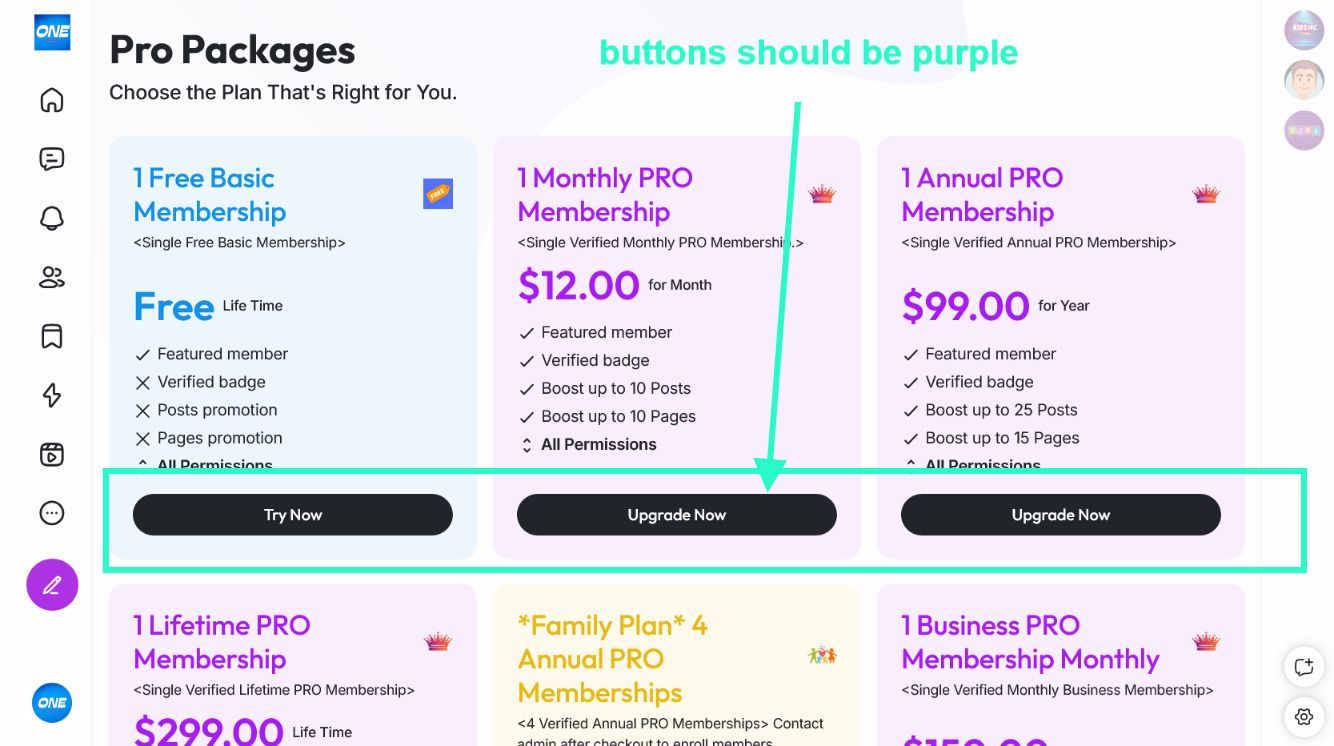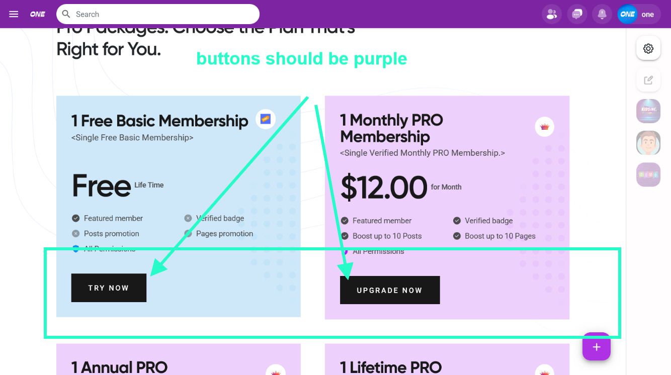 PRO PACKAGES BUTTONS SHOULD BE PURPLE