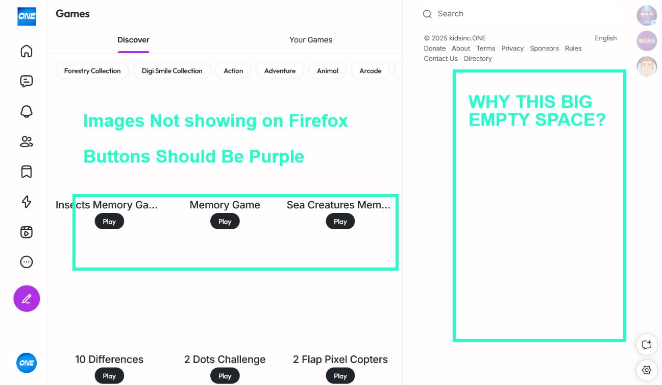 Games are a big feature and should appear on sidebar, not inside pop-up.