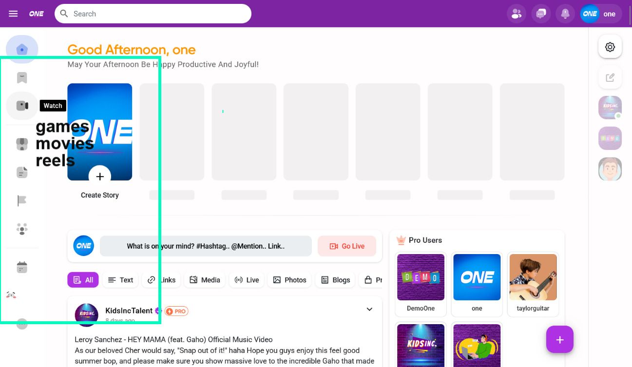 GAMES, MOVIES, REELS, WATCH should be listed together.