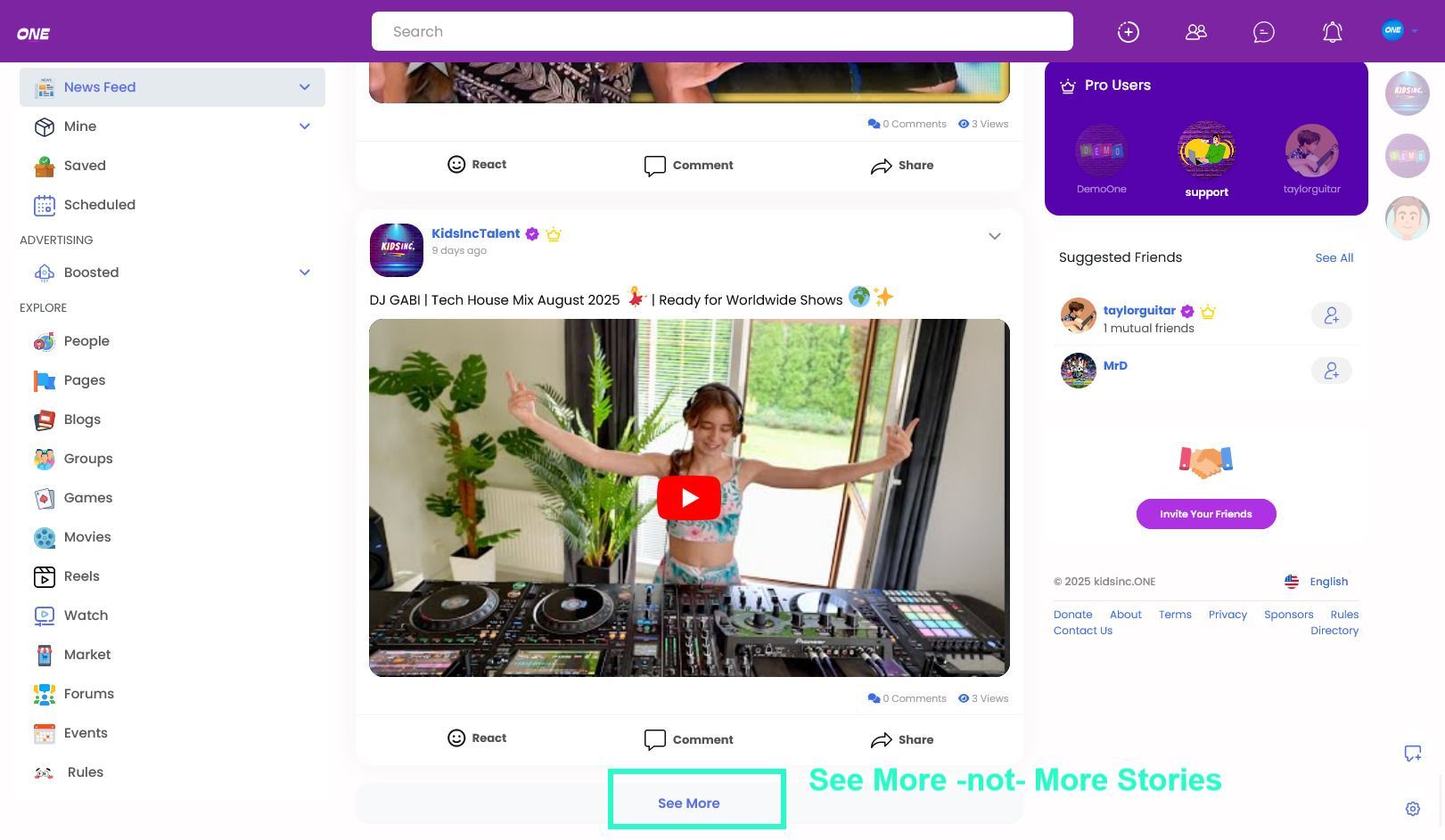 NOTE: When Feed is set for non-continuous scrolling, All themes say "MORE STORIES" but Stories are different than posts so It should say "SEE MORE" or "SEE MORE POSTS".